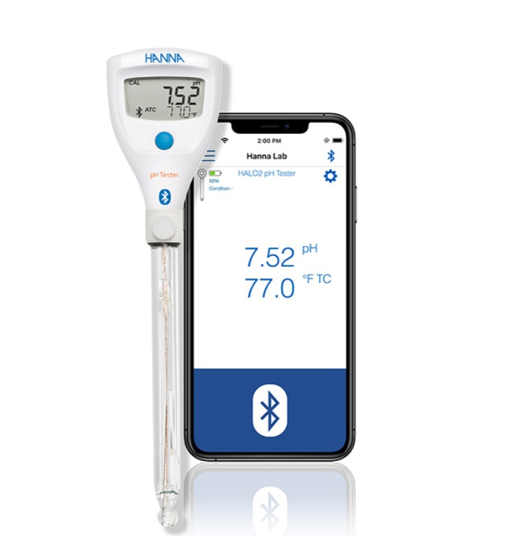Funcția Bluetooth® permite integrarea ușoară cu aplicația Hanna Lab și cu sistemul curent de gestionare a informațiilor de laborator (LIMS). Testerele de pH wireless HALO2 sunt conforme GLP.
